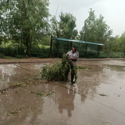 物业公司工作人员雨后清理...