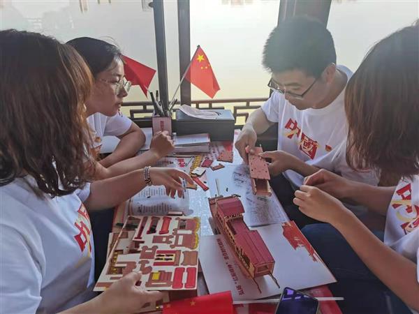 在画舫船上,党员干部集中观看了视频党课“红船精神”,手工