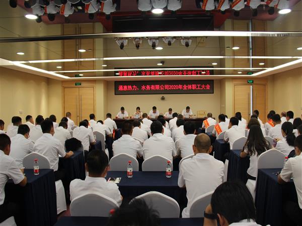 2020年9月1日,鄂尔多斯市通惠热力有限公司、通惠水务有限公司2020年全体职工会议在会展中心4号会议室隆重召开,总经理王小亮、副总经理白建鑫、杨丽霞、朱玉国、总工孟健勇及全体员工84人参加了会议。