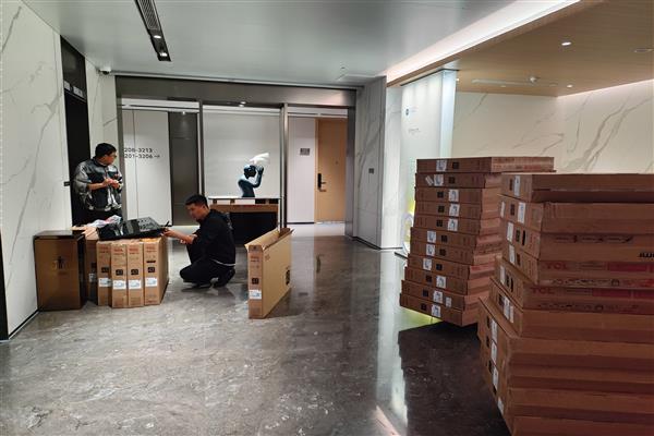 向鄂尔多斯人才科创中心配送TCL电视并组装调试